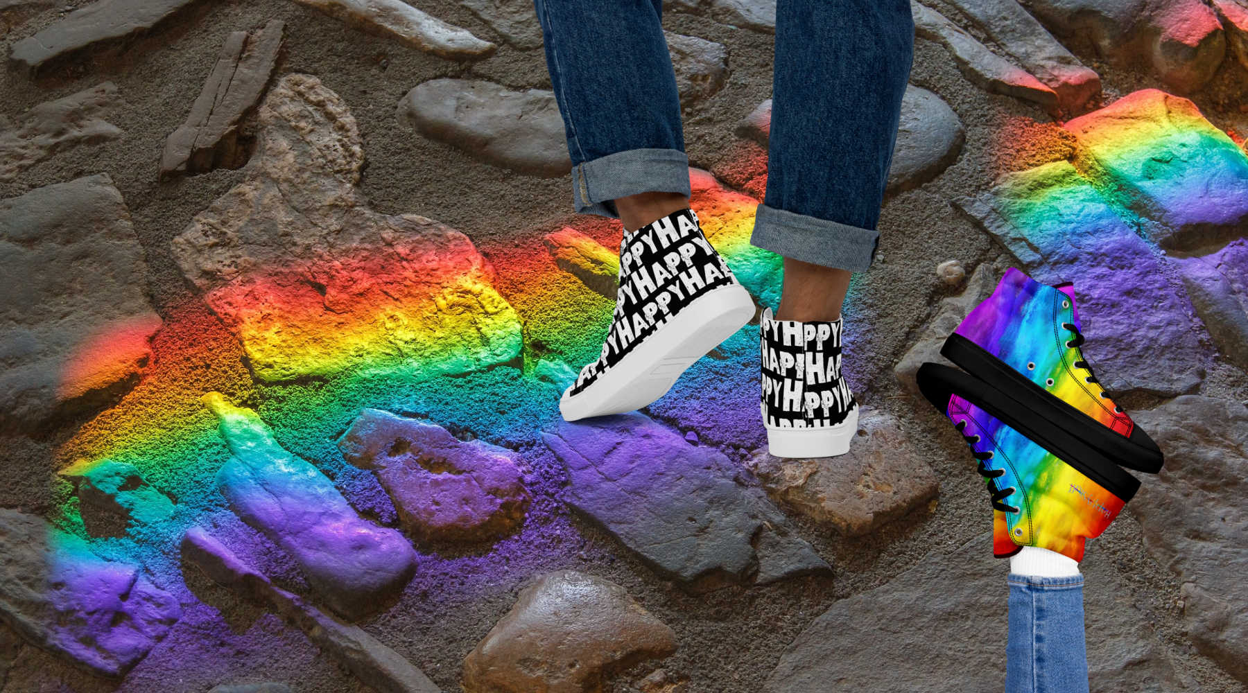 Happy Rainbow Painted High Tops Collection