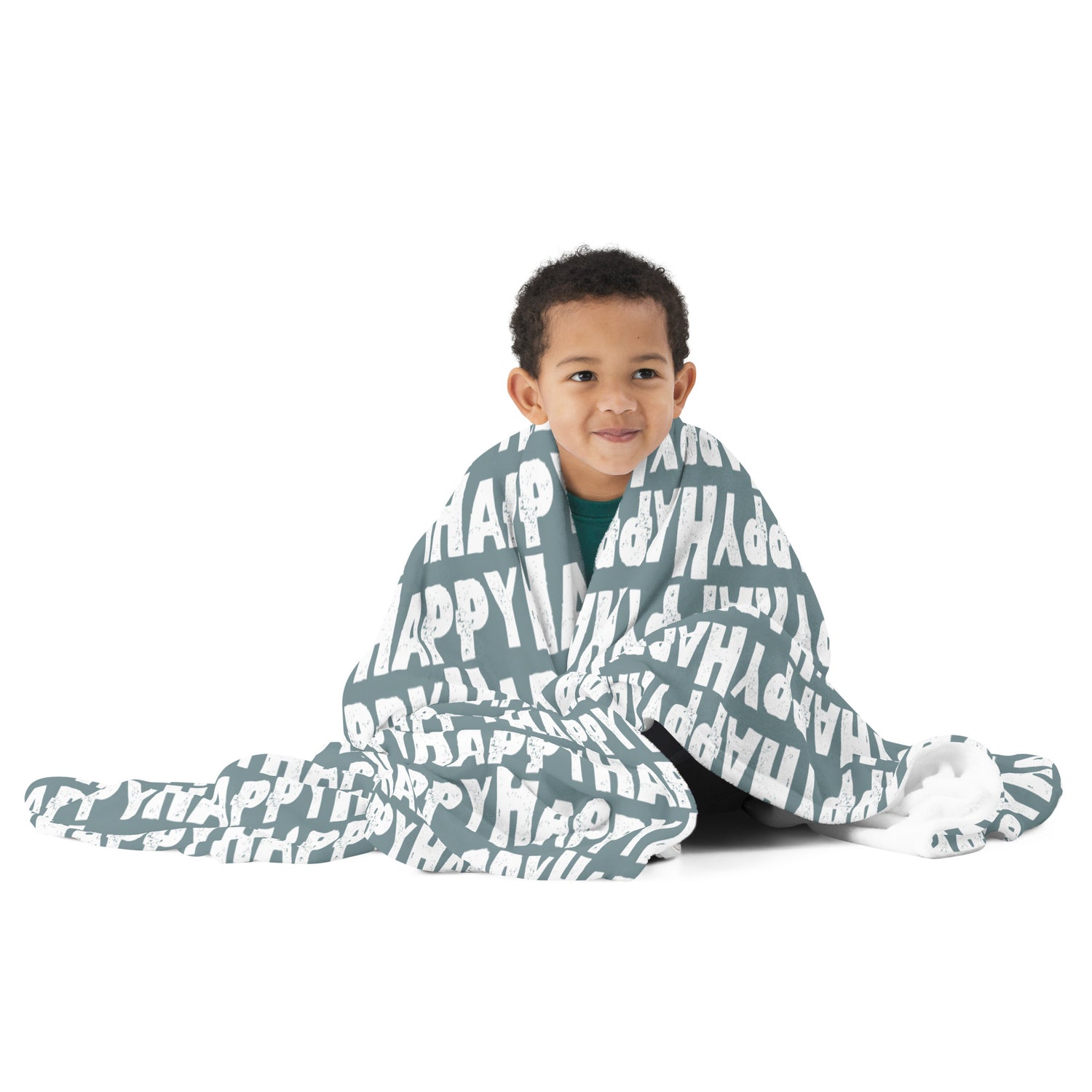 Throw Blanket "Happy" Sponge Print Slate Green Soft Blanket