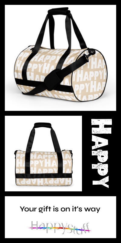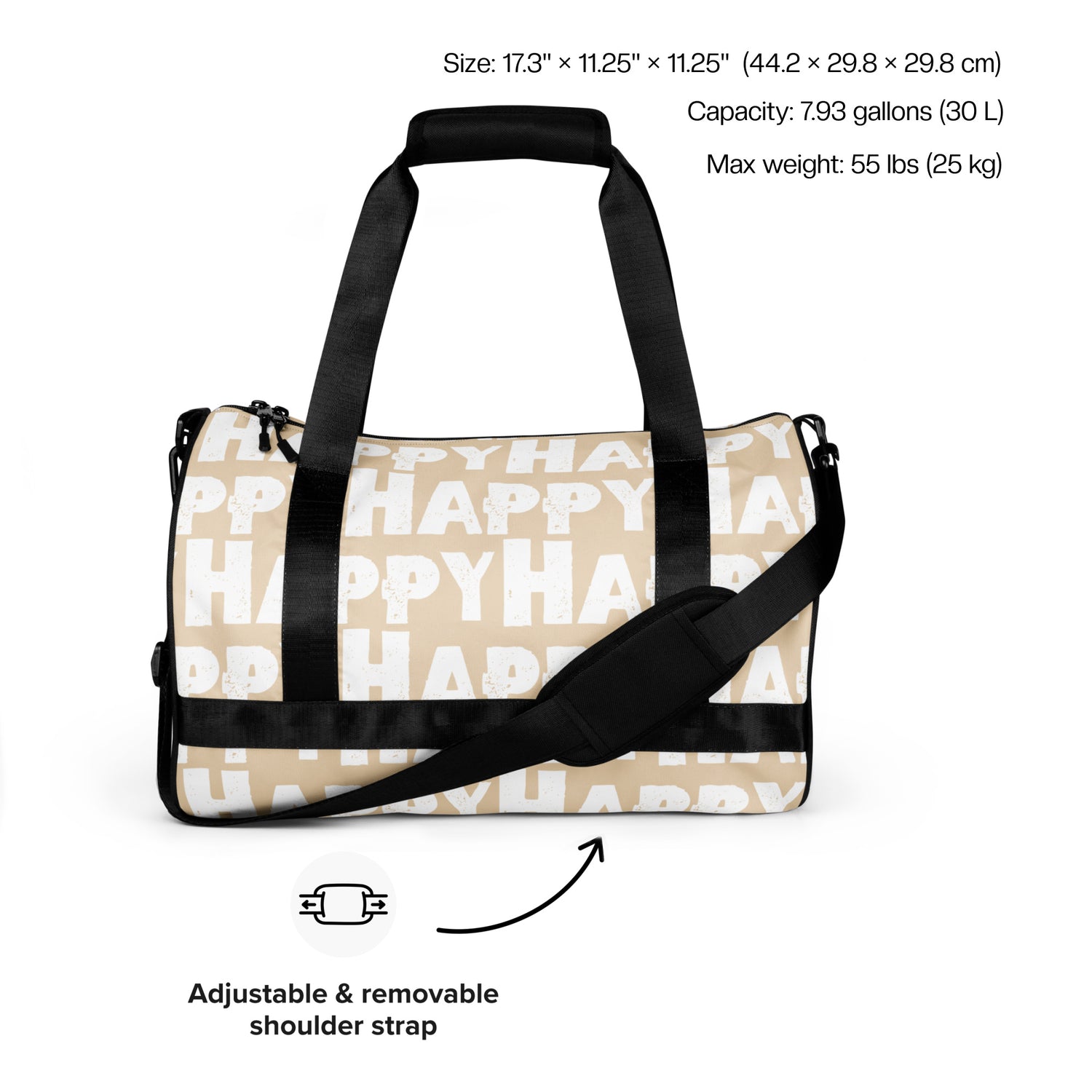 Gym Bag "Happy" Sponge Print Beige Small Duffle Bag