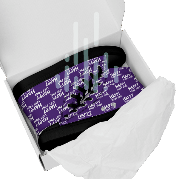 Purple High Tops "Happy Left Foot" "Happy Right Foot" Pattern Print Women's Sneakers