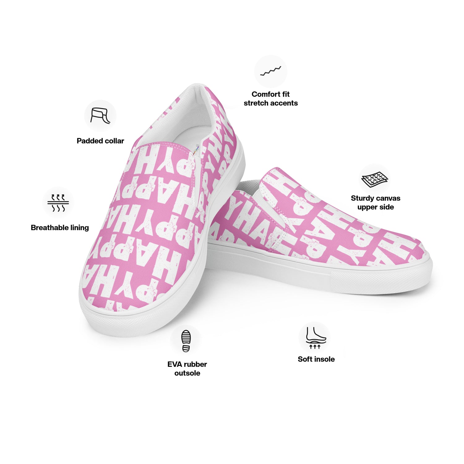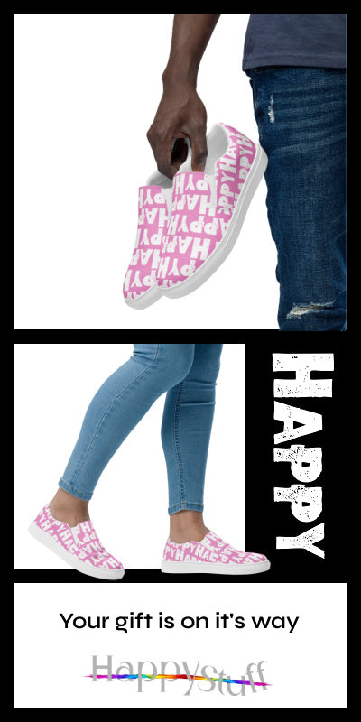 These are not your grandpa's deck shoes! Add fun to your wardrobe and never go unnoticed. The happy print brings a smile while the breathable fabric and soft insole keep your feet happy. "Happy" Sponge Print Canvas Men's Pink Slip On Shoes~The happiest shoe you'll ever own! Pink shoes for the shoe collector. A perfect choice for those who love to look good and feel good.