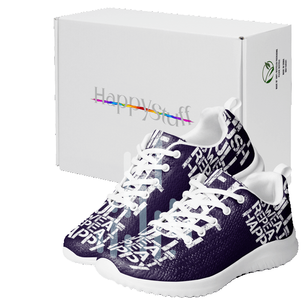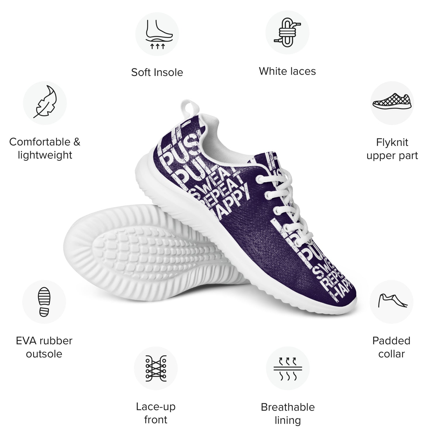Gym Shoes "Lift Push Pull Sweat Repeat Happy" Distress Print Men's Dark Purple Athletic Shoes