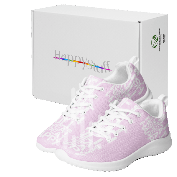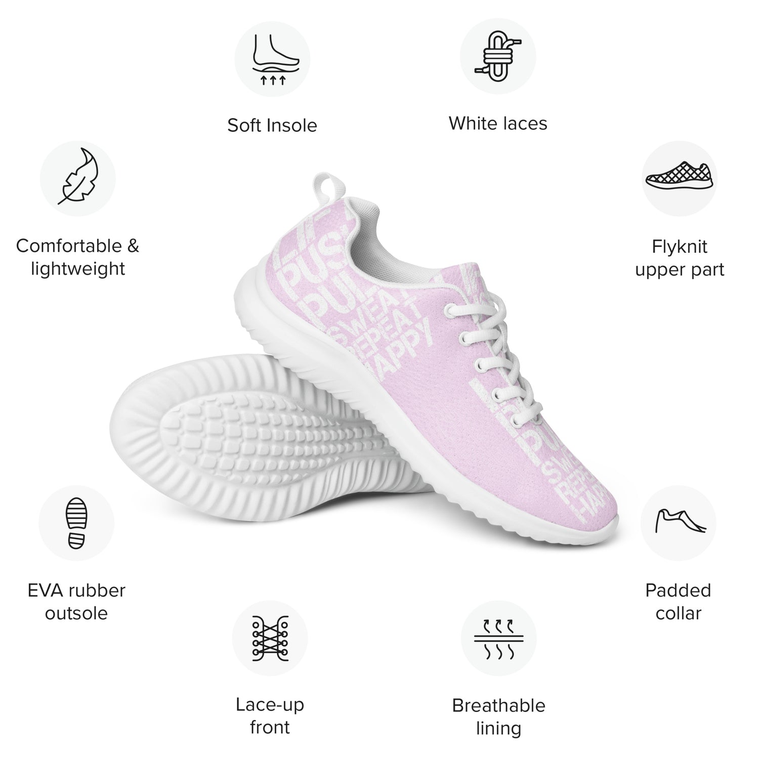 Gym Shoes "Lift Push Pull Sweat Repeat Happy" Distress Print Women's Pink Athletic Shoes