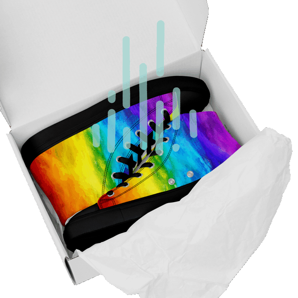 Holi colours Batman! These are some rainbow colour explosion high tops! Rainbow Shoes Holi Colours Men's High Top Sneakers with a cushy insole, breathable lining and a soft padded collar. A bold celebration of the colour spectrum pops with the black sole and accents of this design. Happy on the dark side? Perfect fit.