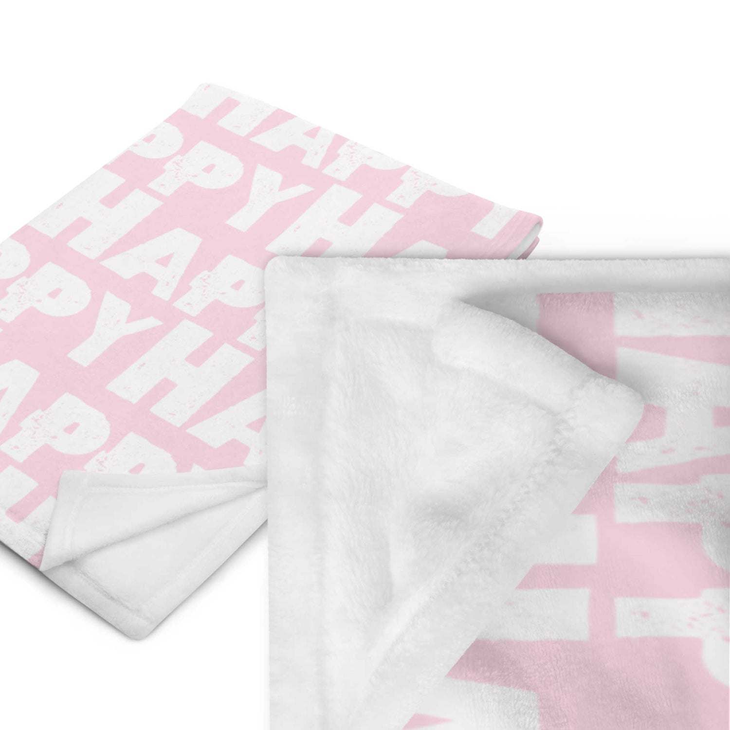 Throw Blanket "Happy" Sponge Print Baby Pink Soft Blanket