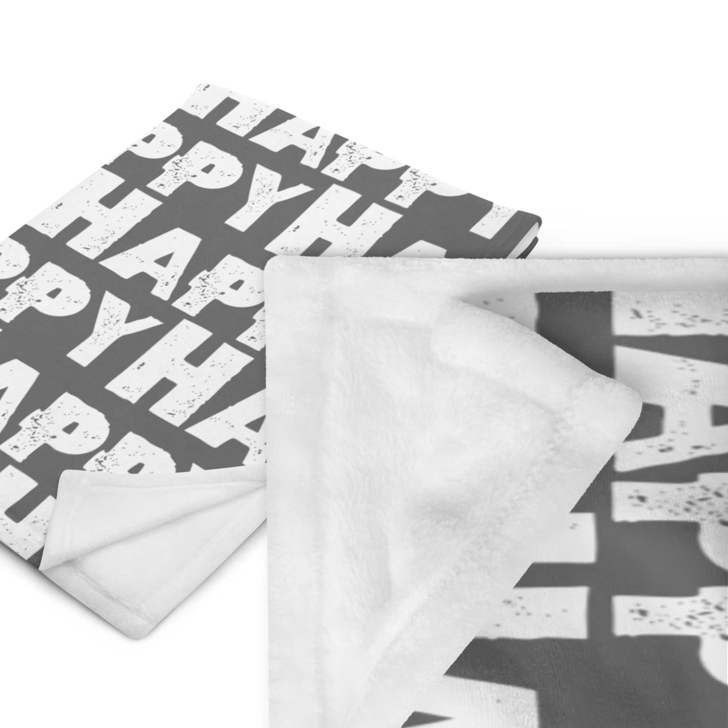 Throw Blanket "Happy" Sponge Print Dark Grey Soft Blanket