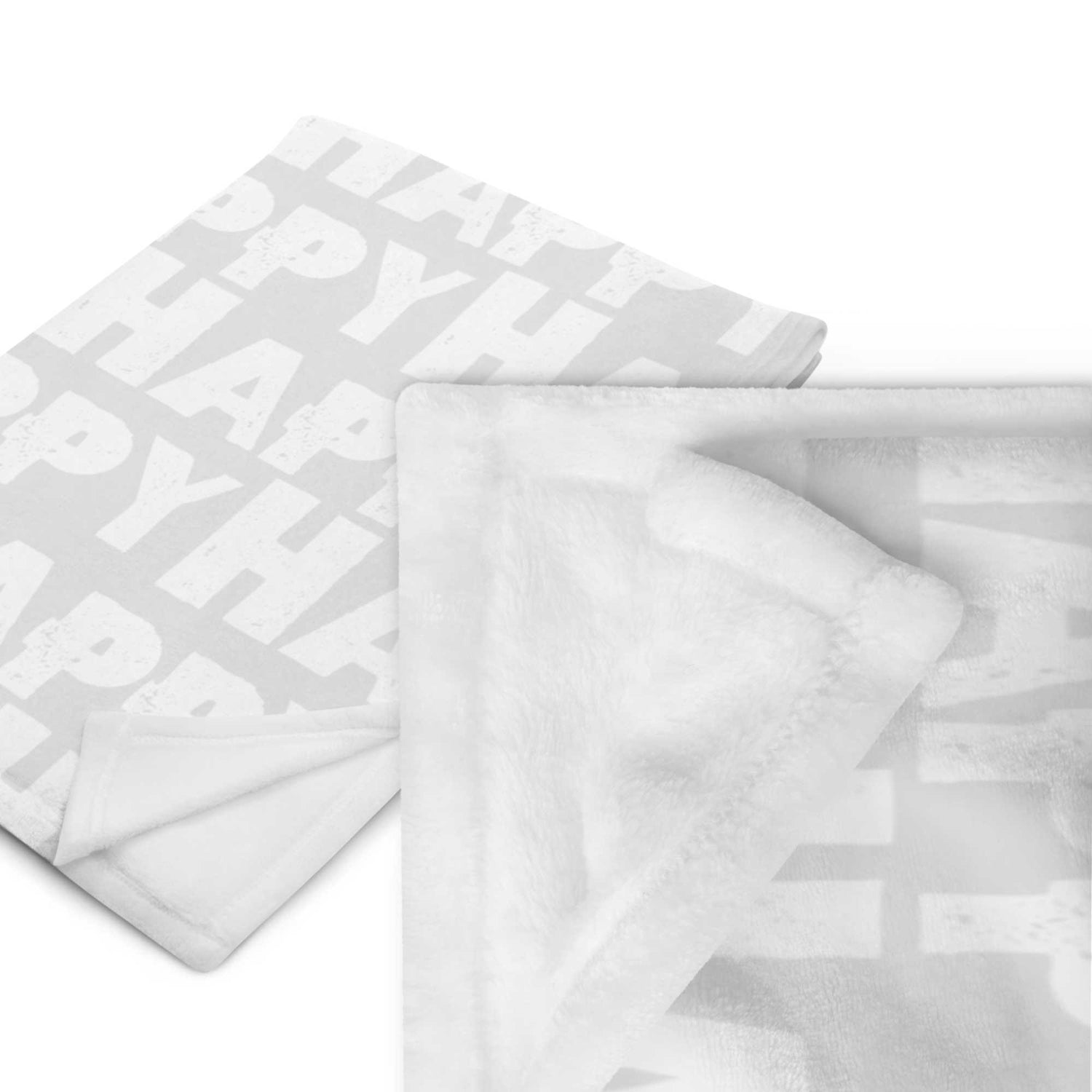 Throw Blanket "Happy" Sponge Print Pale Grey Soft Blanket
