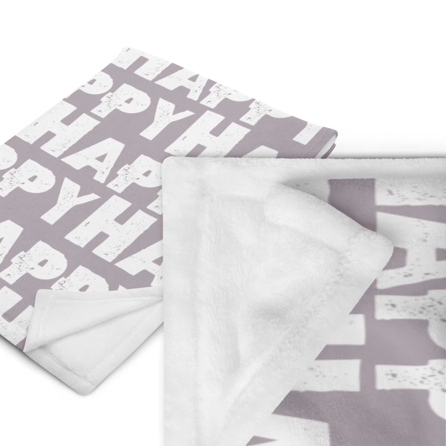 Throw Blanket "Happy" Sponge Print Pale Grey Soft Blanket