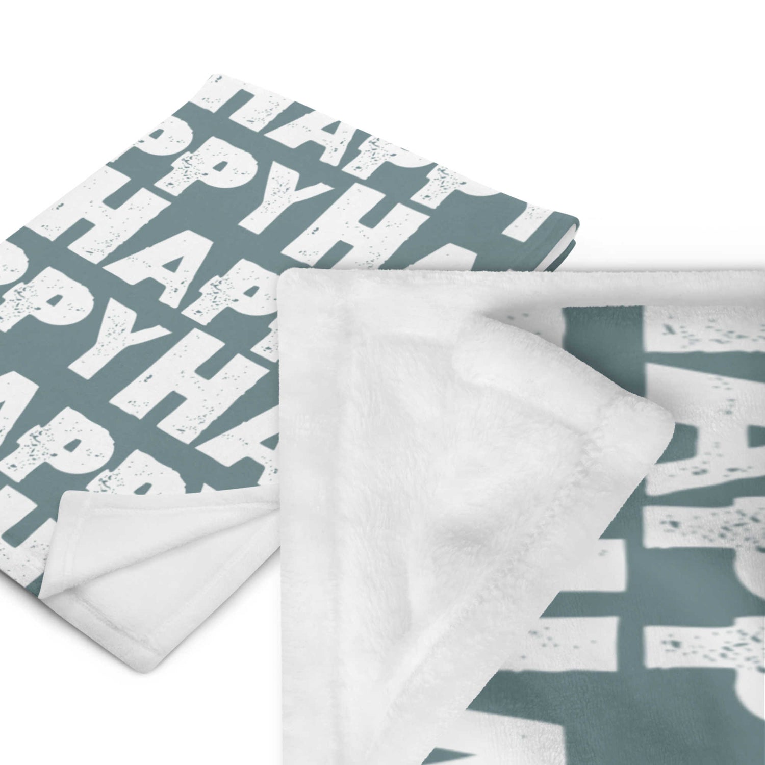 Throw Blanket "Happy" Sponge Print Slate Green Soft Blanket